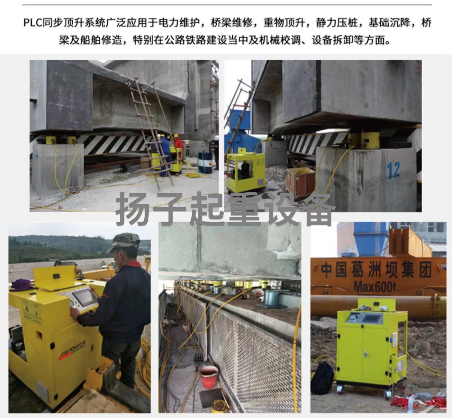 PLC同步頂升系統(tǒng)廣泛應用于電力維護,橋梁維修,重物頂升,靜力壓樁,基礎沉降,橋梁及船舶修造,特別在公路鐵路建設當中及機械校調(diào),設備拆卸等方面。 特點 ★高速置零、低速頂升,升降速度可以任意控制;